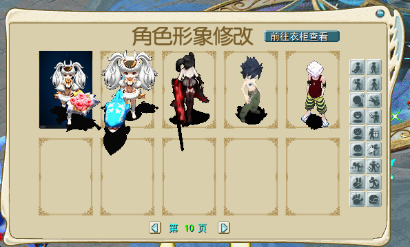 人物形象皮肤可通过 人物状态栏—衣柜—服装商城  打开查看