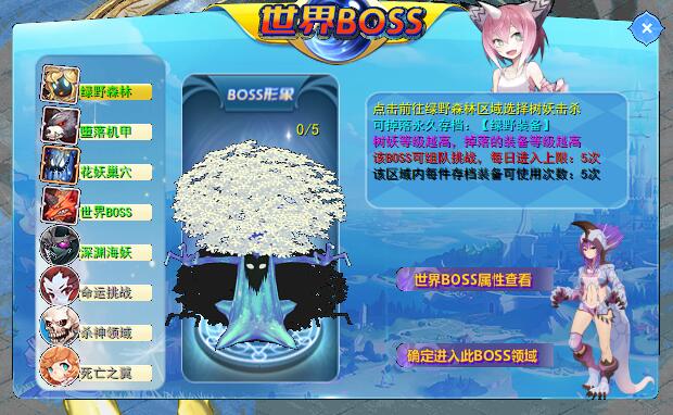 选择挑战的树妖等级越高,掉落的绿野装备等级越高【R/SR/SSR/UR/SP/LSP】