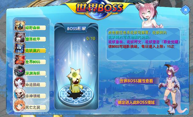 游戏目录—世界区域内可打开界面选择 花妖巢穴 进入该区域【该区域可组队挑战】