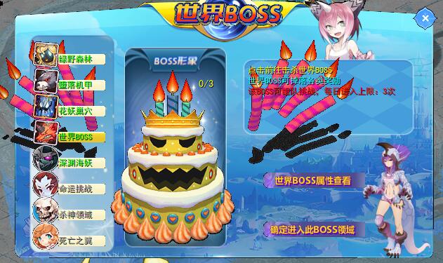 游戏目录内可打开 世界区域 进入世界BOSS区域【该区域可组队挑战】